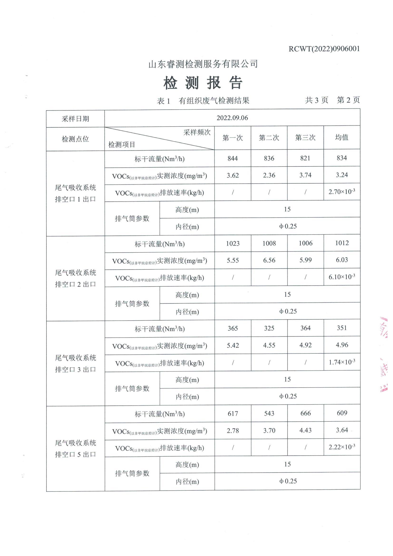 2022年9月份環(huán)保檢測報告