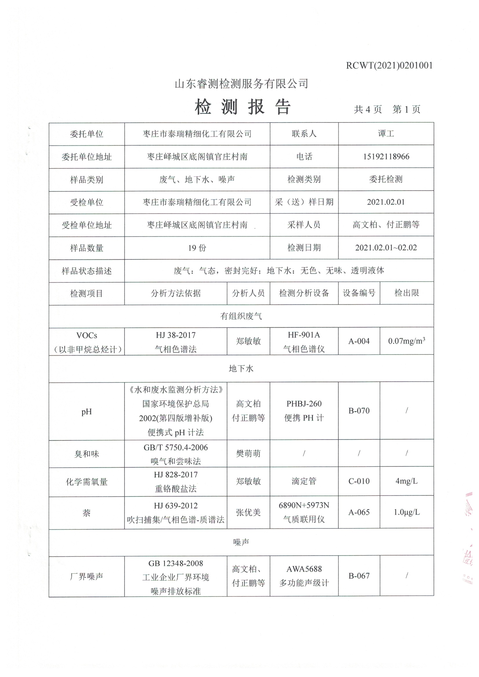 2021年2月份自行檢測報(bào)告