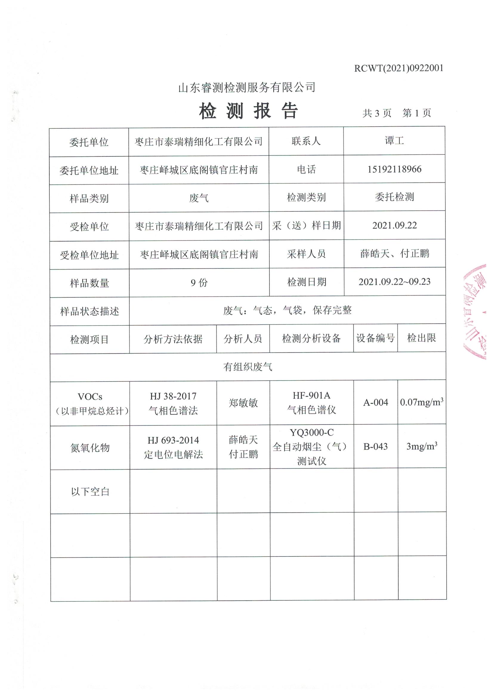 2021年9月份自行檢測(cè)報(bào)告